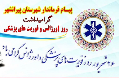 پیام تبریک فرماندار شهرسـتان پیرانشهر به مناسبت گرامیداشت " روز اورژانس و فوریت های پزشکی