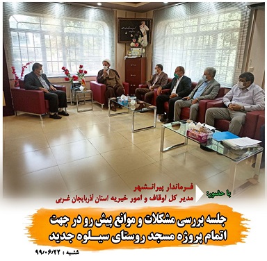 برگزاری جلسـه بررسی مشکلات و موانع پیش رو در جهت اتمام پروژه مسجد روستای سیلوه جدید با حضور فرماندار پیـرانشهر، "حاج آقا جوانبخت" مدیر کل اوقاف و امور خیریه استان آذربایجان غربی، هئیت همراه و سایر مسئولین