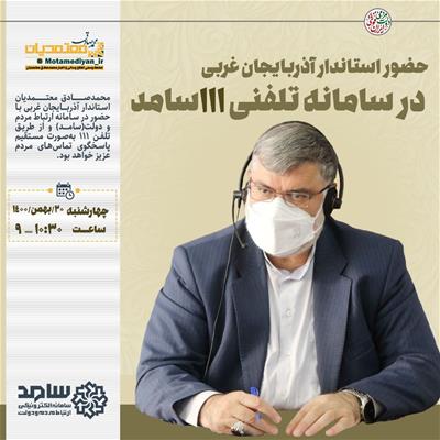 ⭕️ حضور استاندار آذربایجان غربی در سامانه تلفنی 111 سامد جهت پاسخــگویی به ســوالات مردم؛