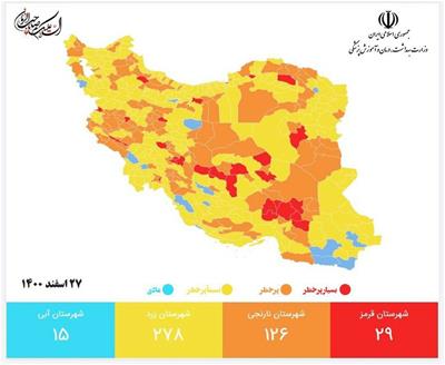 🔴 کاهش شهرهای قرمز کرونایی و افزایش شهرهای زرد و آبی
