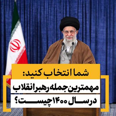 برای انتخاب مهمترین و بهیادماندنیترین جملهی حضرت آیتالله خامنهای در سال 1400 از مخاطبان خود خواست تا جمله مورد نظرشان را ارسال کنند.