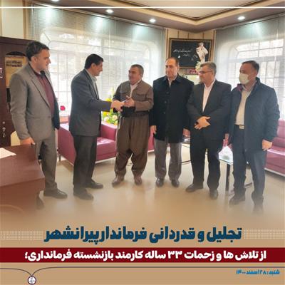🔴 تجلیل و قدردانی فرماندار پیرانشهر از تلاش ها و زحمات 33 ساله کارمند بازنشسته فرمانداری؛