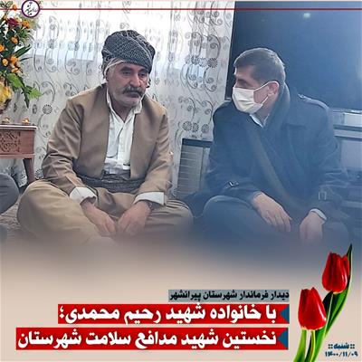 ✍️ امروز شنبه 9 بهمن ماه؛ فرماندار شهرستان پیرانشهر به همراه اعضای شورای اسلامی و شهردار پیرانشهر و جمعی از مسئولین شهرستان، با خانواده «شهید رحیم محمدی» نخستین شهید مدافع سلامت شهرستان دیدار بعمل آوردند.- شنبه 9 بهمن 1400 ساعت 13:00