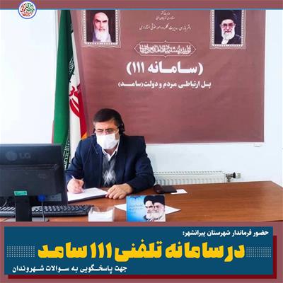 🔴حضـور فرماندار شهرستان پیرانـشهر در سامانه تلفنی 111 سامـد جهت پاسخــگویی به ســوالات شــهروندان