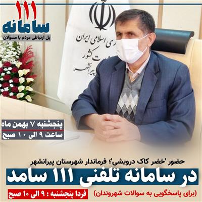 ▪️حضور 'خضر کاک درویشی'؛ فرماندار شهرستان پیرانشهر در سامانه تلفنی 111 سامد برای پاسخگویی به سوالات شهروندان