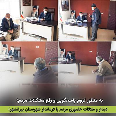 🔴 دیدار و ملاقات حضوری اقشار مختلف مردم در زمینه های مختلف با فرماندار شهرستان پیرانشهر؛