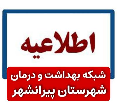 اطلاعیه شبکه بهداشت و درمان شهرستان پیرانشهر: