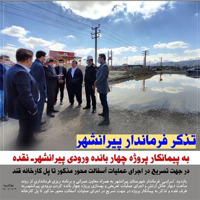 ▪️بازدید "تـرابـی" فرماندار شهرستان پیرانشهر به همراه معاون عمرانی و برنامه ریزی فرمانداری از روند ساخت دیوار حائل ارتش و اجرای عملیات تعریض و بهسازی پروژه چهار بانده کردن ورودی پیرانشهـر(جلوی پادگان) به طرف نقده و تذکر به پیمانکار پروژه در جهت تسریع در اجرای عملیات آسفالت محور مذکور تا پل کارخانه قند