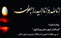 "سید علی ترابی" فرماندار شهرستان پیرانشهر در پیامی شهادت جمعی از دریادلان نیروی دریایی ارتش همیشه قهرمان جمهوری اسلامی ایران را تسلیت گفت.
