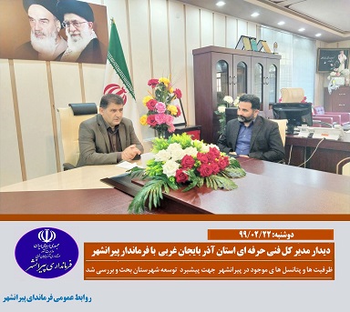 برگزاری جلسه بررسی مشکلات و نیازهای شهرستان پیرانشهر در بخش مخابراتی به ریاست "ترابـی" فرماندار پیرانشهـر و با حضور مدیر عامل شرکت مخابرات استان ،بخشداران بخش مرکزی و لاجان و رئیس اداره مخابرات شهرستان در محل دفتر فرمانداری؛