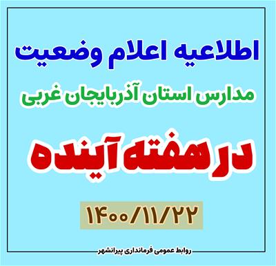 *اعلام وضعیت فعالیت مدارس استان آذربایجان غربی در هفته آینده*