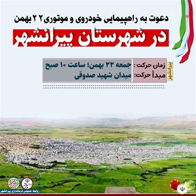 🔴 اطلاعیه راهپیمایی خودرویی و موتوری یوم الله 22 بهمن در شهرستان پیرانشهر؛